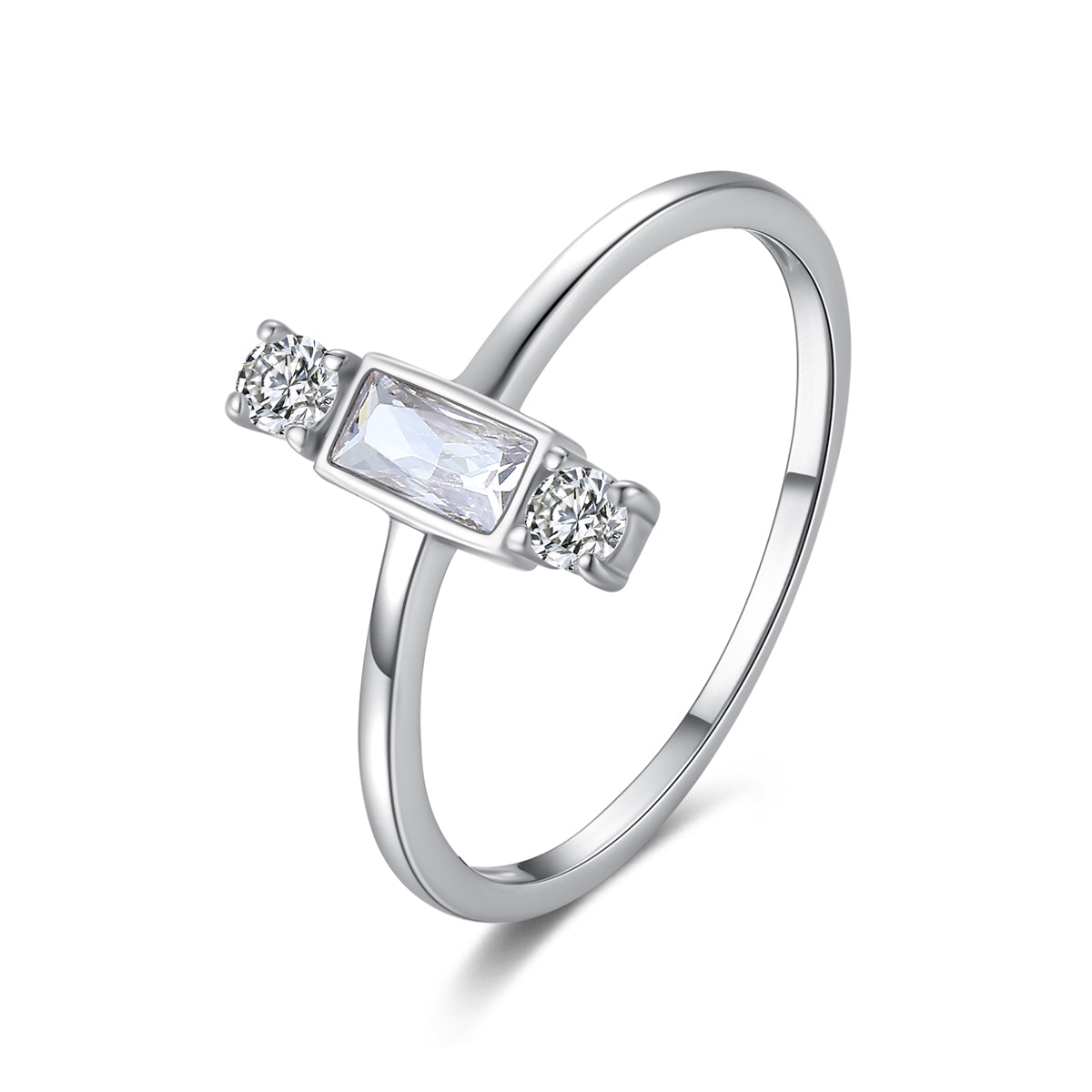 This 925 sterling Silver Ring for Women features a stunning a minimalistic open band design crafted in a sleek silver-tone finish. Its ring center, showcases a radiant rectangular cut stone by two brilliant round-cut CZ accents on both side. This ring makes a best choice for yourself or someone special for memorable occasion.