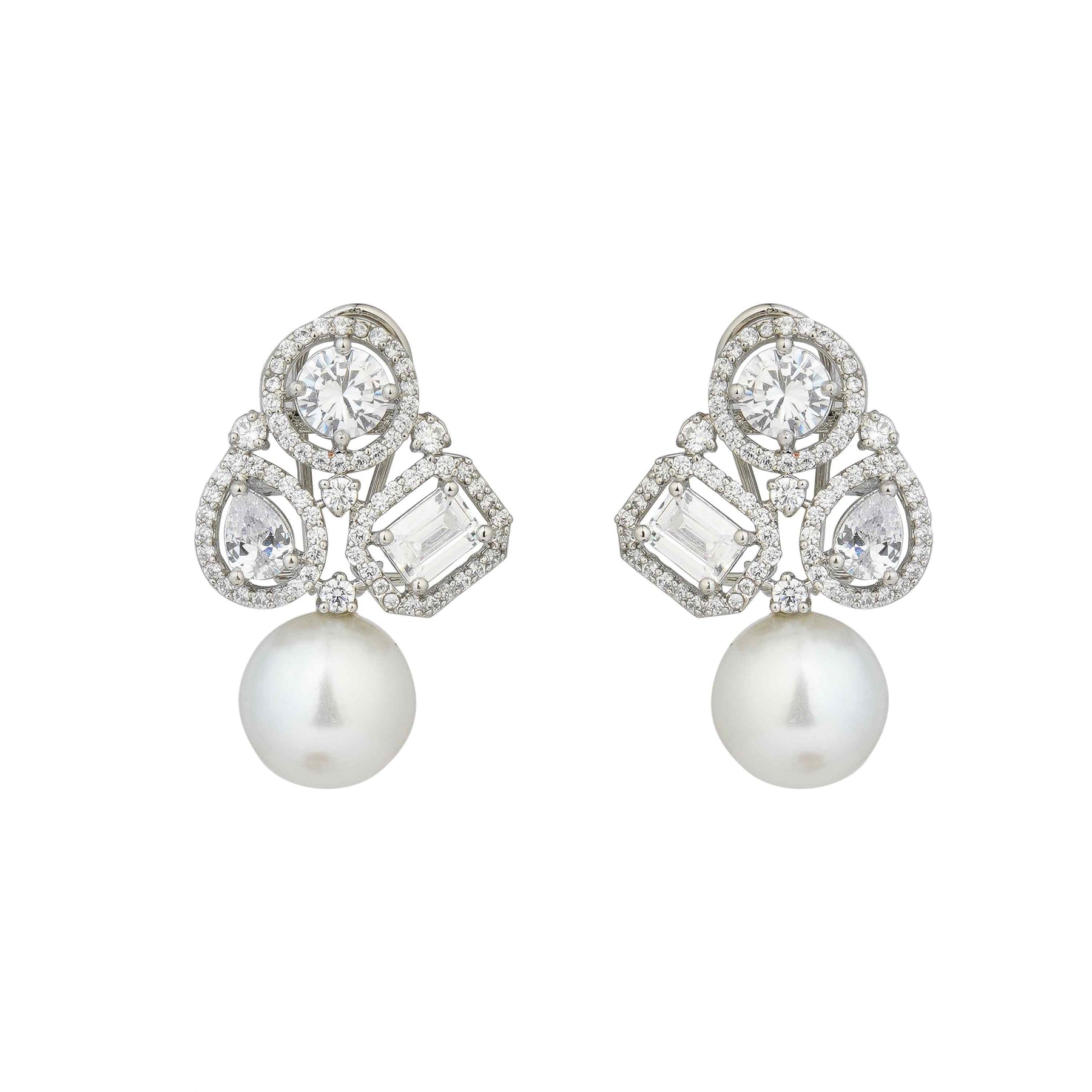 ✨ Bring timeless elegance to your collection with these Pearl Drop Stud Earrings. Designed with a cluster of sparkling CZ stones in unique shapes, they are finished with a single lustrous pearl drop for a graceful touch. Their polished design makes them versatile enough to pair with festive, bridal, and everyday outfits, adding sophistication to every look. Lightweight and stylish, they offer comfort while still making a statement.