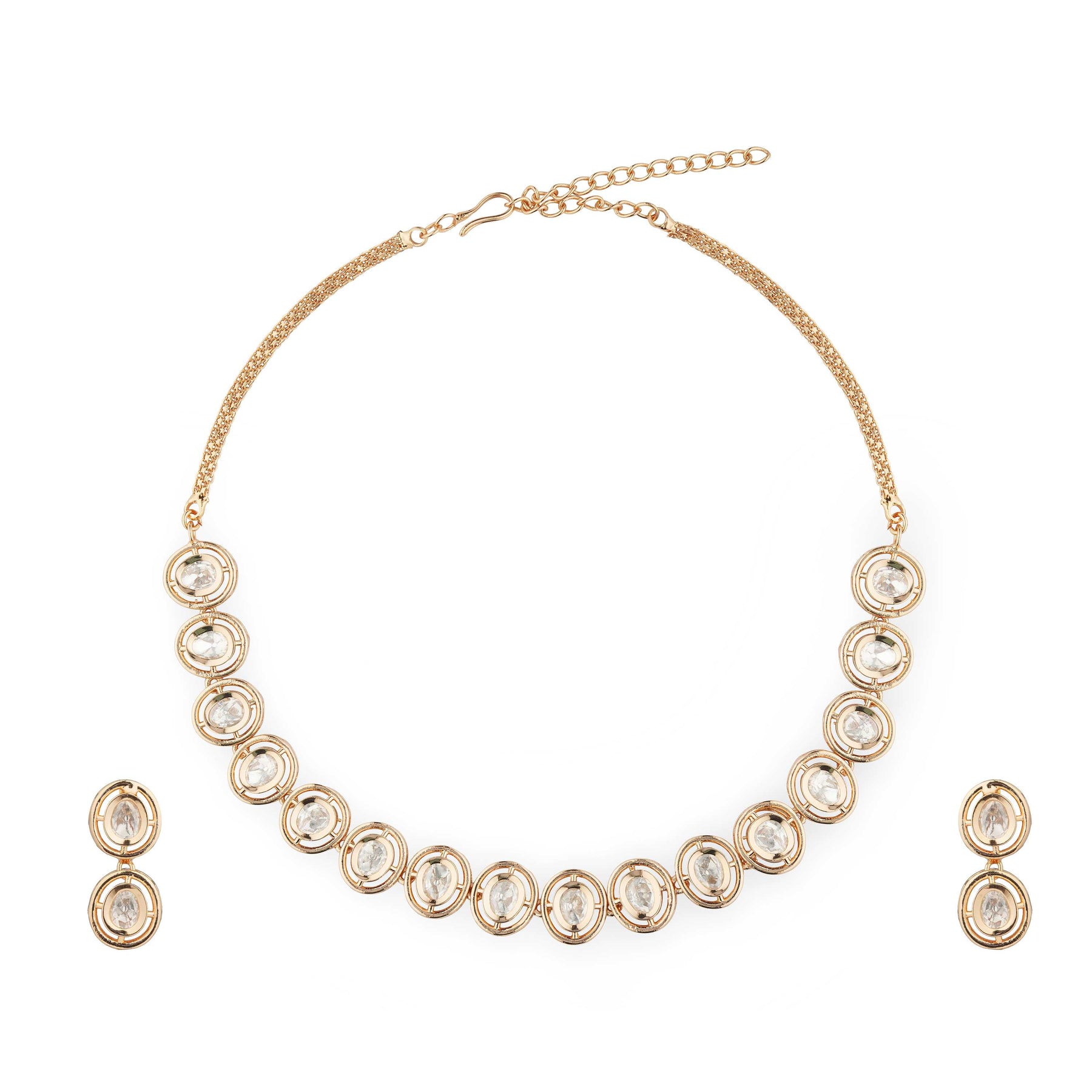 Design: Dual-layered oval CZ stone necklace with matching drop earrings