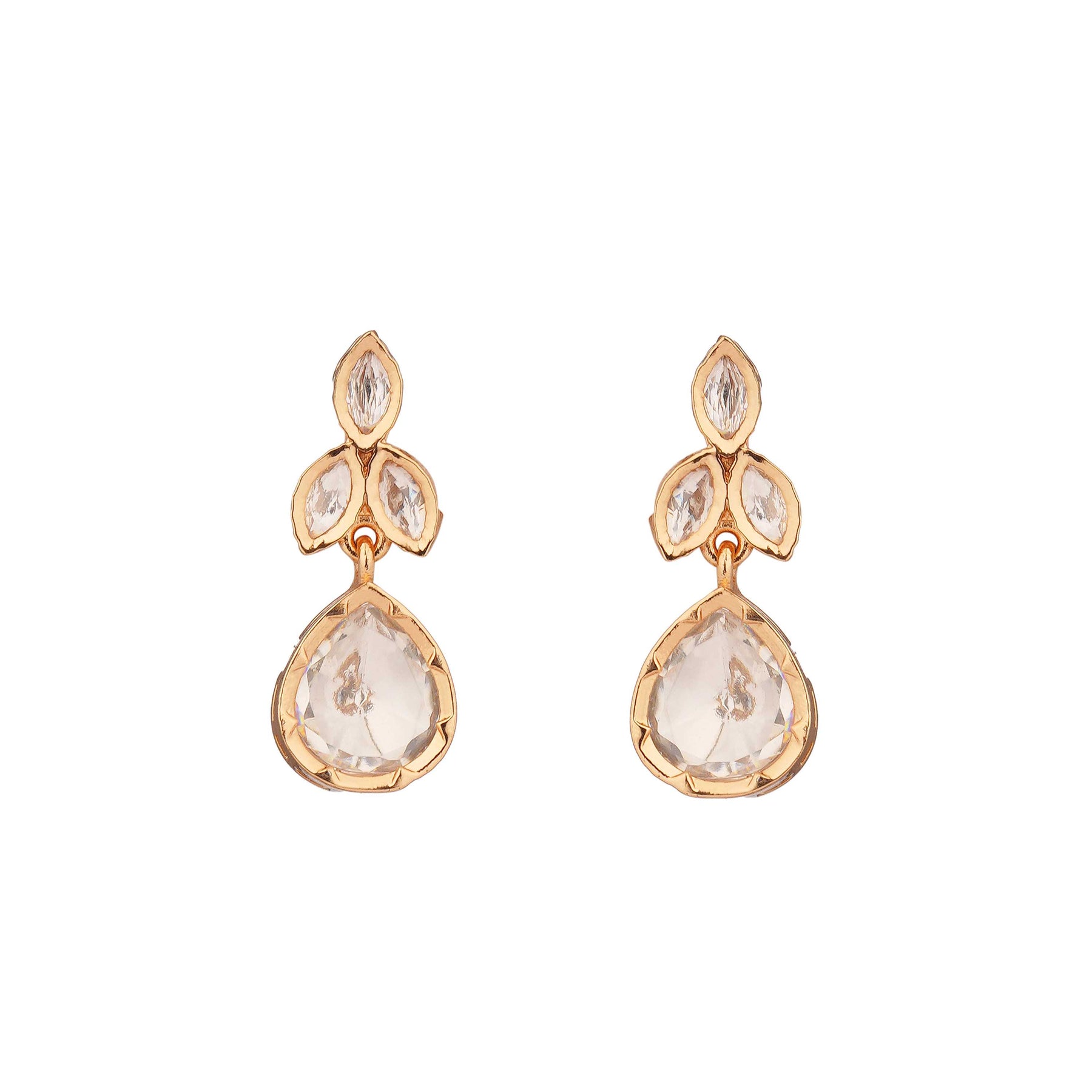 A timeless pair of earrings crafted with AAA+ CZ stones that sparkle with brilliance. Featuring a floral-inspired top with marquise-cut stones and a dazzling teardrop dangler, the design is set in a polished gold-tone finish for a refined appeal. Lightweight and comfortable, these earrings blend subtle charm with modern elegance, making them versatile for both daily wear and special occasions.