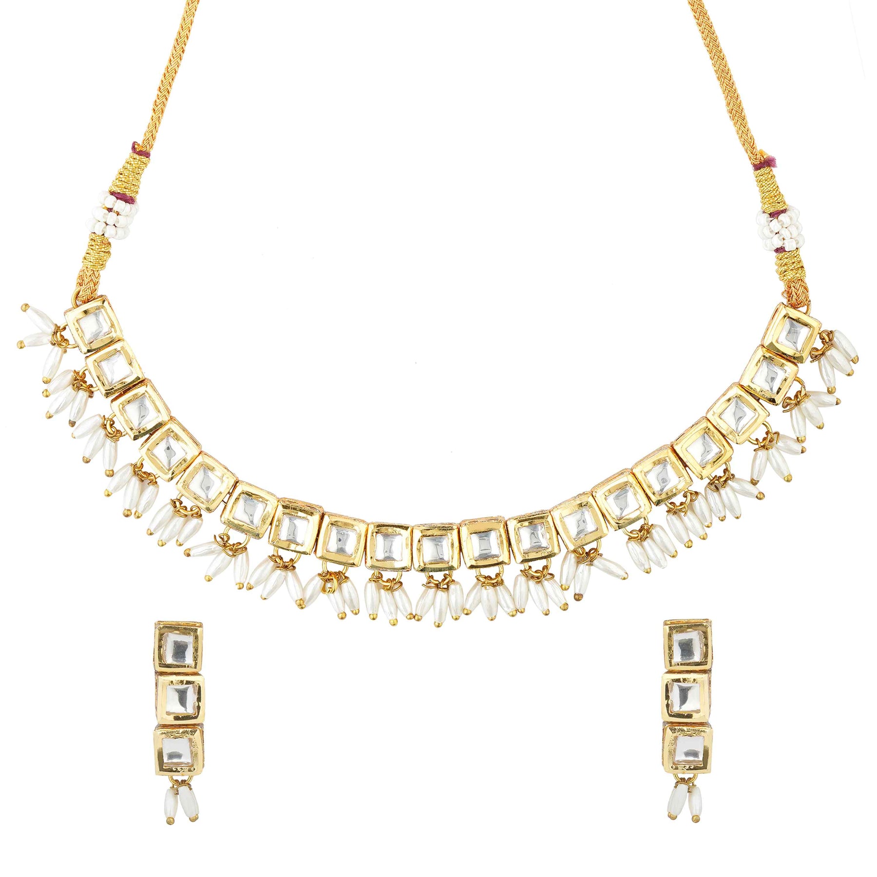 ✨Add a royal touch to your style with this Gold Plated Kundan Choker Necklace Set with Earrings. Designed with sparkling Kundan stones and finished with delicate pearl drops, this choker set blends traditional craftsmanship with timeless elegance. The matching earrings complete the look, making it a must-have for special occasions.